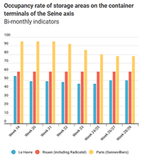 Occupancy rate of storage areas on the container terminals of the Seine axis