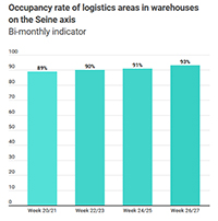 Occupancy rate of logistics areas in warehouses on the Seine axis*: 93%